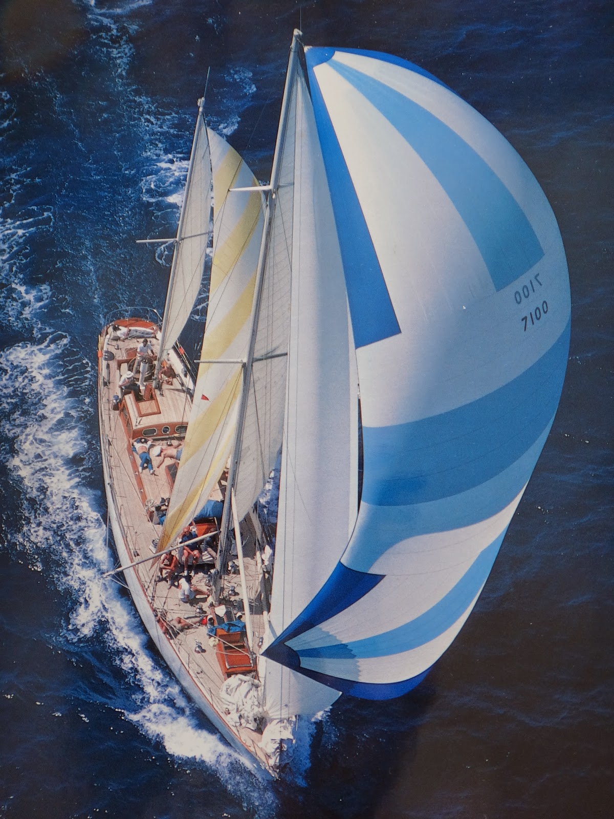SYMMETRICAL SPINNAKERS NOW 40% OFF OUR EVERY DAY EXTREMELY LOW PRICES. Times change, skippers are changing to asymmetrical spinnakers and we are finding that sales of standard spinnakers (both luffs the same measurement) are slowing down. As you know, we cap our sail prices at $1500.00!!! That means that an excellent spinnaker as pictured on the 78' ketch "Miramar"would now only cost you $900.00!!! In the 45 year history of our store we have never discounted sails this deep, ESPECIALLY SPINNAKERS. How can we do this and still keep the doors open? Millionaires and billionaires donate their sails to colleges and non profits and reap huge tax benefits. The non-profits approve of the way get these sails back aboard other yachts and that we buy sails in large volume and that our checks ALWAYS CA$H!! You will never find a better time to pick up a spinnaker. Cruisers, standard spinnakers are still a great way to cover long distances. I set a 2.2 oz. spinnaker at Capetown, South Africa and carried it for 31 days. No chafe, you can sail deep and not be reaching all over the place. Don't scrap you spinnaker pole, steal a great spinnaker at an UNHEARD OF PRICE from Minneys and go fly your kite... Happy Easter- The crew at MINNEYS..